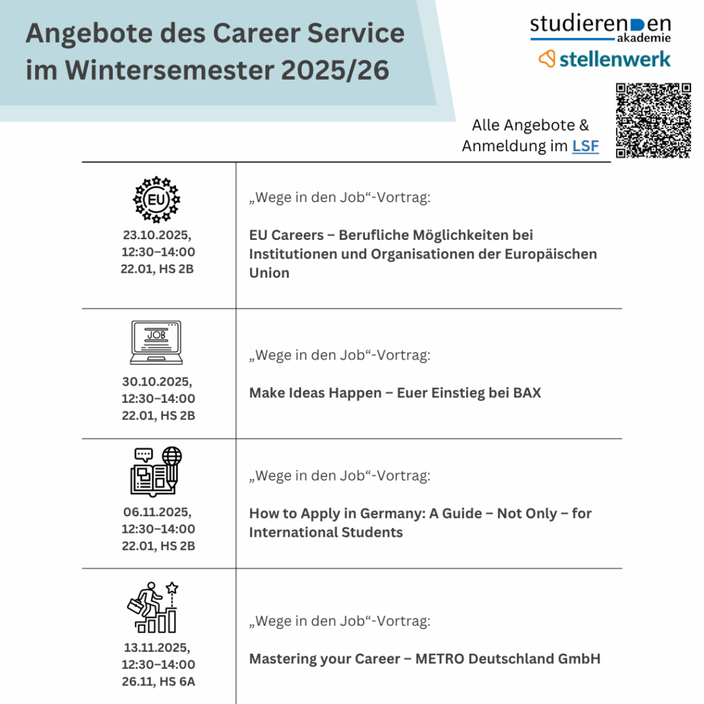 - Angebote des Career Service im Wintersemester 25/26