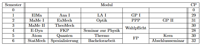 Studienplan für den Bachelor Physik mit Beginn im Sommer (nicht offiziell!)